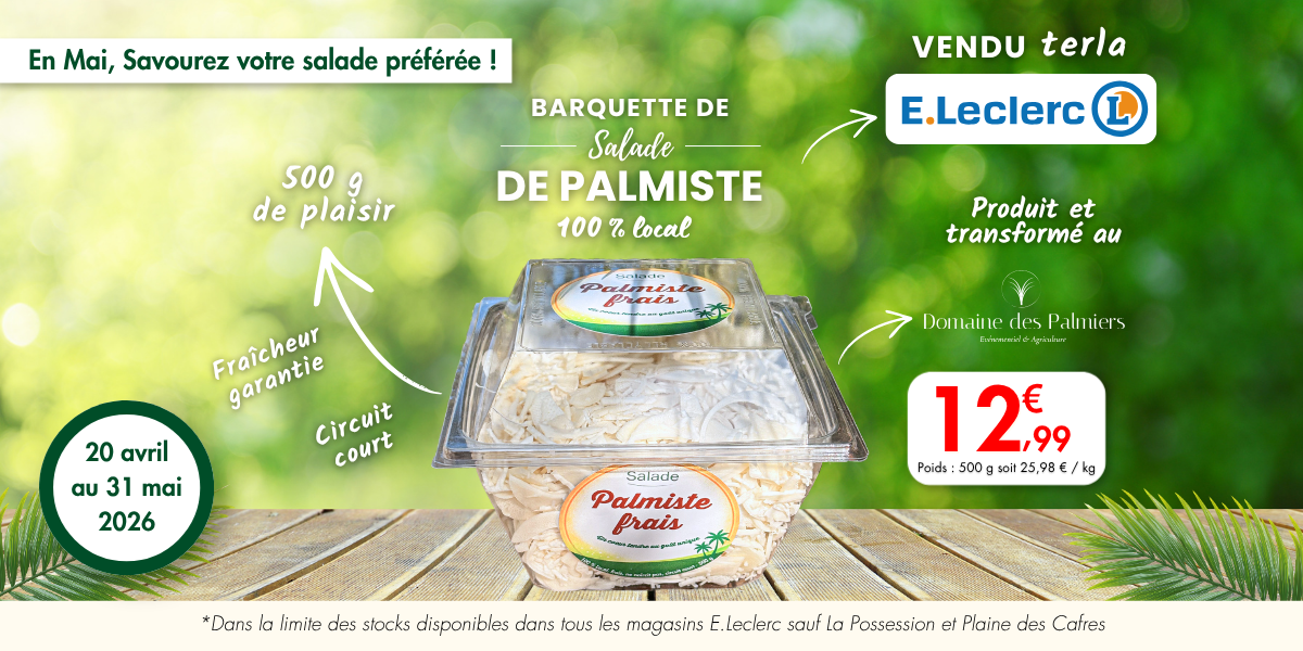 Cultivé avec soin, dégusté avec plaisir : le goût frais du Palmiste Royal. Le Domaine des palmiers à Saint-Paul est non seulement un site événementiel, mais à l’origine une exploitation agricole produisant du palmiste royal frais depuis 2003.